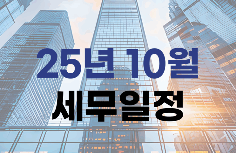 안녕하세요. 대표님의 든든한 절세 파트너 세무법인 가치입니다. 오늘은 2025년 10월 세무 일정을 알려드리려고 합니다. 📣 2025.10.10 (금)🔹레저세[농특세·지방교육세 포함] 신고 납부, 주민세[종업원분] 신고납부 (9월분)🔹국민연금·건강·고용·산재보험료 납부 📣 2025.10.15 (수)🔹원천징수분 법인세·소득세·지방소득세[소득분] 납부 (9월분)🔹증권거래세 신고납부전자등록기관 등 금융투자업자🔹고용·산재보험 근로내용 확인 신고 📣 2025.10.20 (월)🔹담배소비세[지방교육세 포함] 신고납부 (9월분) 📣 2025.10.27 (월)🔹부가가치세 예정신고 납부 (7~9월분)🔹개별소비세 [농특세·교육세 포함] 신고납부 과세유흥장소🔹개별소비세 [농특세·교육세 포함] 신고납부 […]