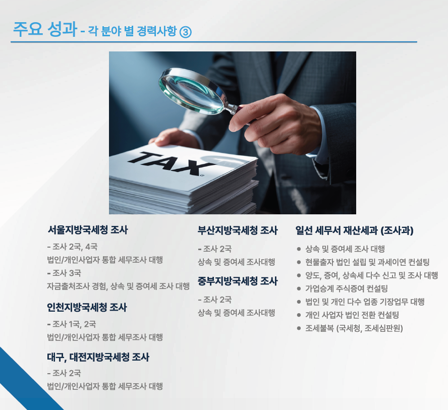 ① 복잡한 세법을 정확히 이해하고 국세청의 조사 절차와 쟁점을 잘 알기에, 조사관의 의도를 파악하고 적절하게 대응할 수 있습니다.