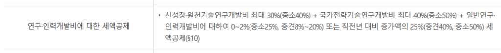 – R&D 세액공제와 고용 관련 공제 활용