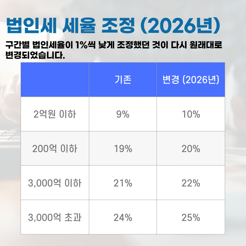 2026년부터 법인세 신고시 적용되는 법인세율이 일부 상향 조정되었습니다. 그리고 각사업자의 상황에 맞게 법인세 신고 이전에 배당 전략 및 미처분 이익잉여금에 대한 로드맵이 필요합니다.