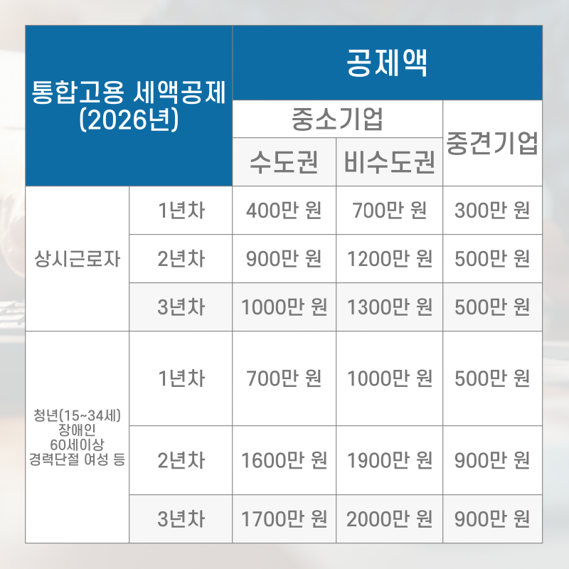 그리고 2026년에 전면 시행되는 ‘개편된 통합고용세액공제’를 주목해야 합니다.
