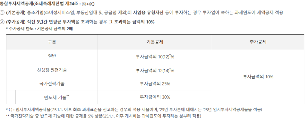 전기장비 제조업은 기계장치, 금형, 테스터 장비 등 대규모 설비 투자가 주기적으로 발생하는 업종입니다. 2026년 세법에서 가장 주목해야 할 점은 ‘통합투자세액공제’으로 이 공제를 잘 활용해야 합니다.